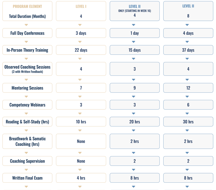 Level I Certification: 5 months · 135+ ICF-accredited training hours